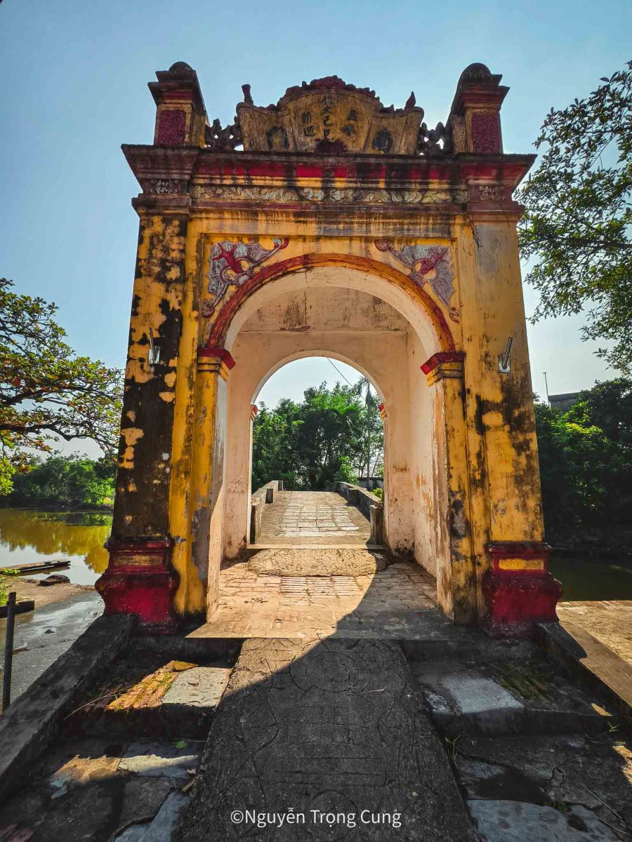 In the past, the village had gates at both ends and many paths leading to neighboring villages. Over time, Dich Diep Trang now has only one village gate left in the south, located next to a gracefully curved stone bridge over a small river.